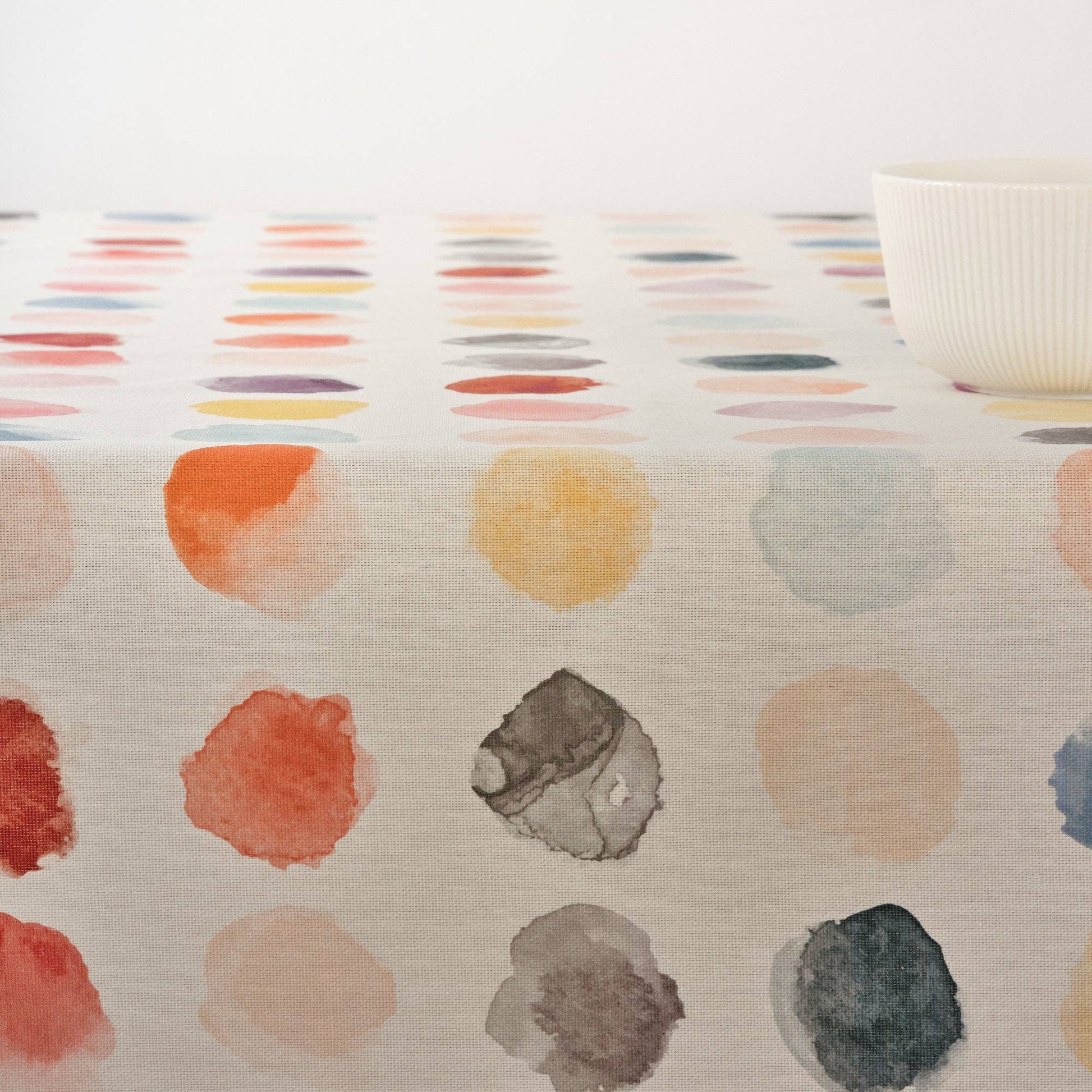 Mantel confeccionado con dos capas de resina y un tratamiento antimanchas, lo que lo hace totalmente impermeable. Sin fluorocarbonos ni tratamientos con teflón, garantizando un producto seguro para el contacto con alimentos. Además, con el tratamiento hidrófugo, le aportamos el anti manchas lo que hace repeler cualquier líquido, incluso café, vino o tomate.