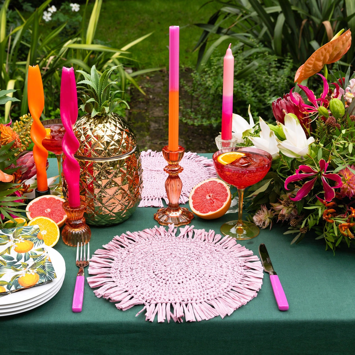 Juego de 2 manteles individuales de rafia color rosa. Hecho a mano con papel de rafia de origen sostenible, eleve cualquier mesa con estos elegantes manteles individuales. Su color rosa los hace ideales para una cena, un cumpleaños o una boda, sea cual sea el tema.