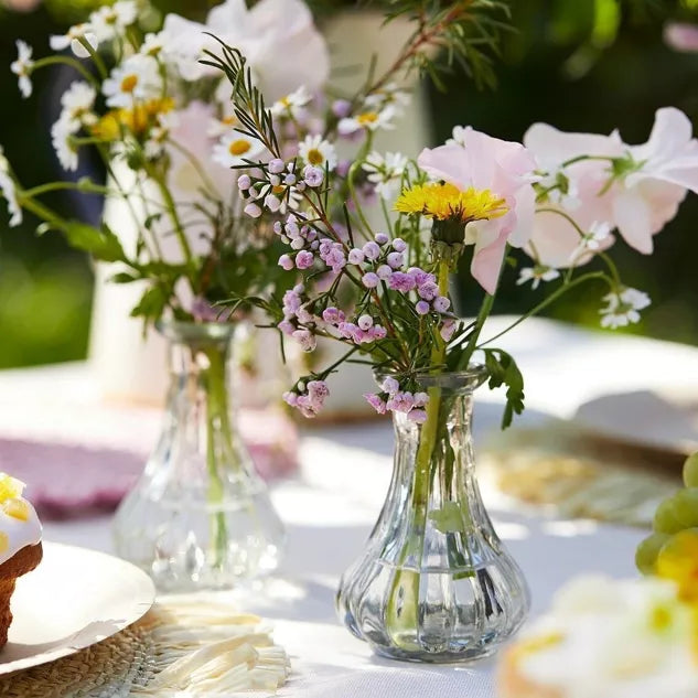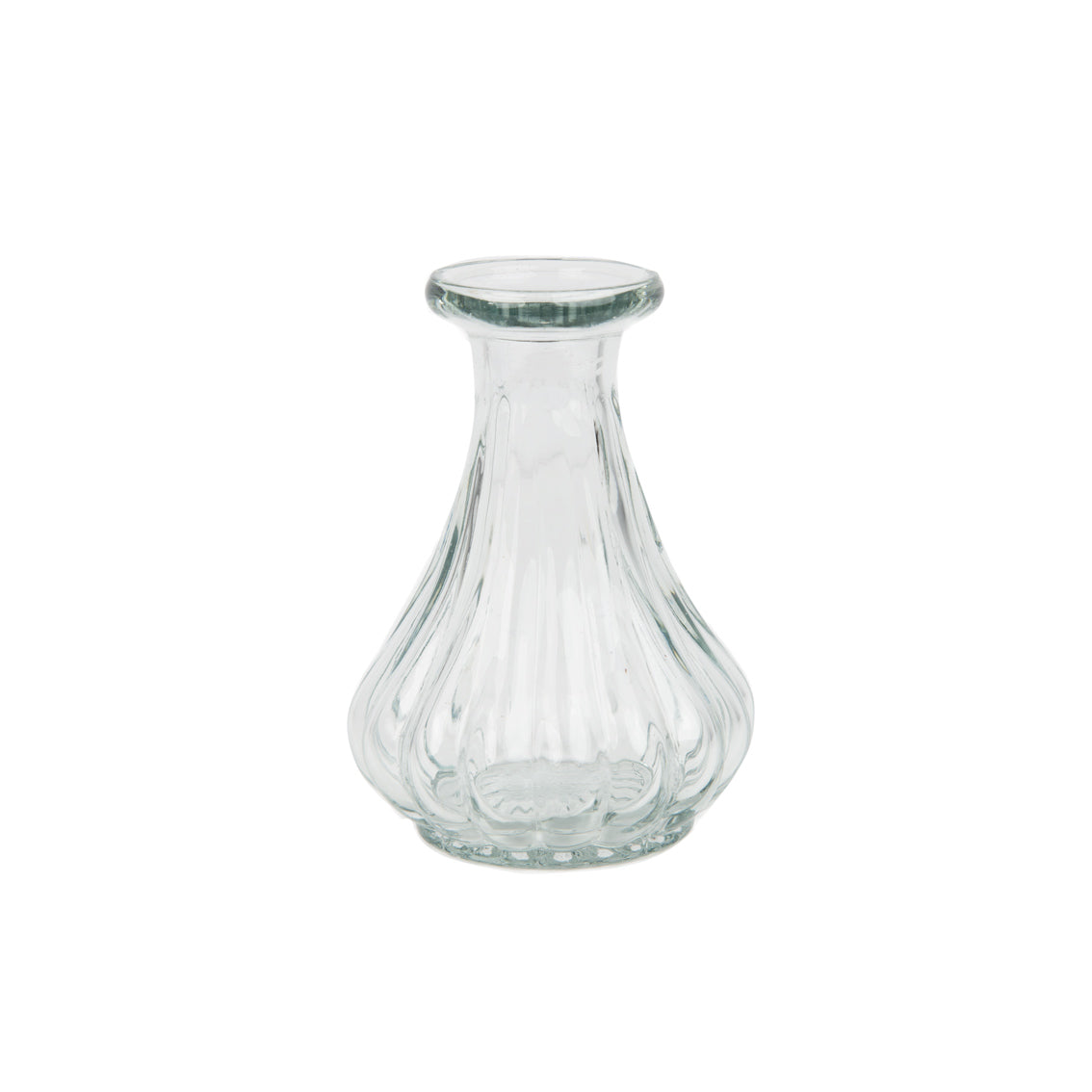 Florero Glass Bud de Talking Tables. Fabricado en la India con vidrio reciclado, este florero presenta una textura acanalada distintiva y un cuello cónico. Inserte flores frescas o follaje para transformar una mesa, una repisa de la chimenea, un estante para libros o el alféizar de una ventana esta primavera.