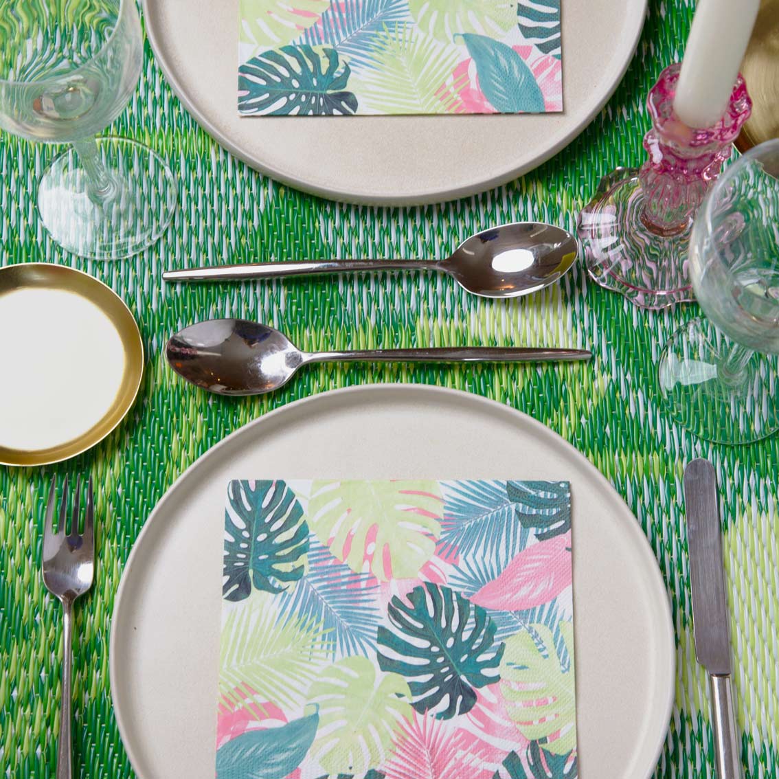 Servilletas de papel con hojas de palmera tropicales en tonos pastel de Talking Tables. Este paquete de 20 servilletas compostables y reciclables para el hogar presenta hojas de palma en bonitos colores pastel. ¡La vajilla de fiesta perfecta para una fiesta tropical, un cumpleaños de verano, un picnic, una barbacoa o una fiesta en el jardín! Combínalo con el resto de nuestra vajilla y decoraciones con temática "Palma tropical" para completar el look. Tamaño: 33 cm x 33 cm desplegado / 13" x 13".