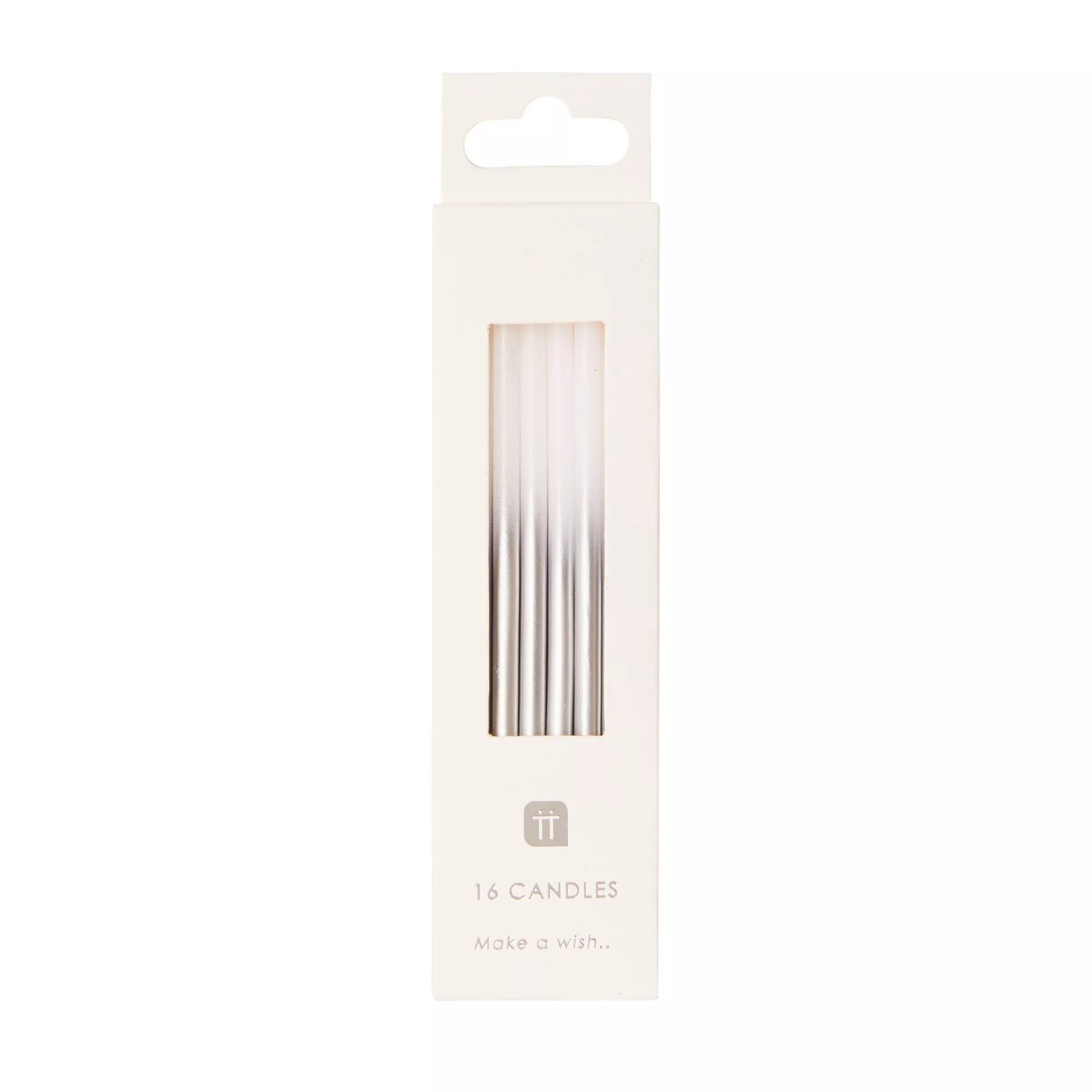 Cada paquete contiene 16 velas blancas y plateadas y portavelas.